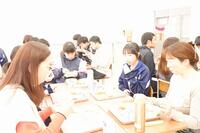 今日は、給食の時間に南高野調理場の調理員のみなさんを学校に招き、全校生徒で会食を行いました。普段は対面することのない給食の作り手との給食は、直接感謝の気持ちを伝えたり、調理員さんたちの思いを感じたりする貴重の場となりました。作り手を目の前にして、いつもより給食の残量が減っていたようでした。